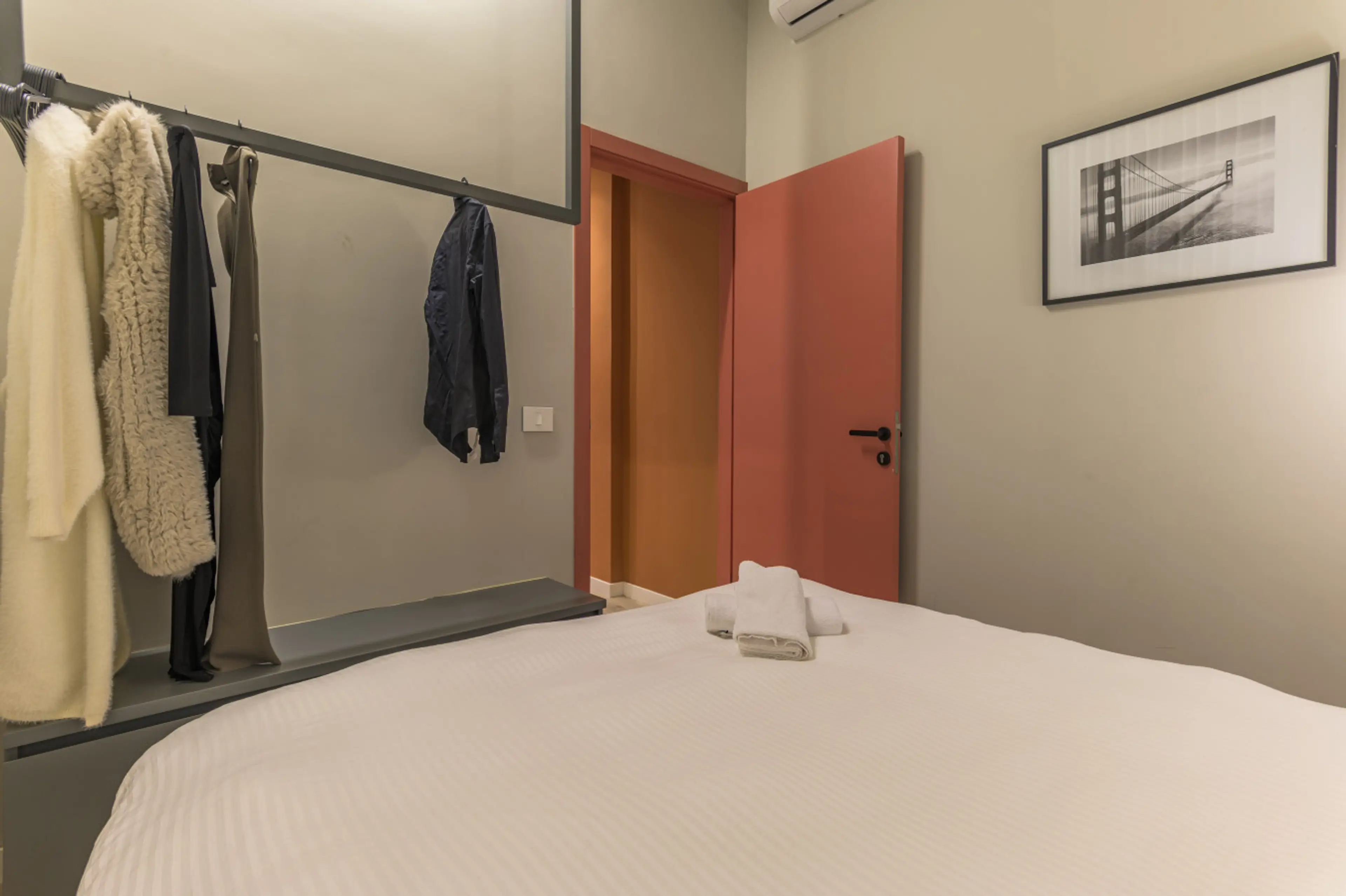 4TH FLOOR- NO ELEVATOR Stay in this stylish, newly designed 2-bedroom apartment ideal for 3 guests. It features a modern living area with a cozy sofa and Smart TV, a fully equipped kitchenette, and a dining/work bar by the window. The apartment includes one bedroom with a king bed and a second bedr...